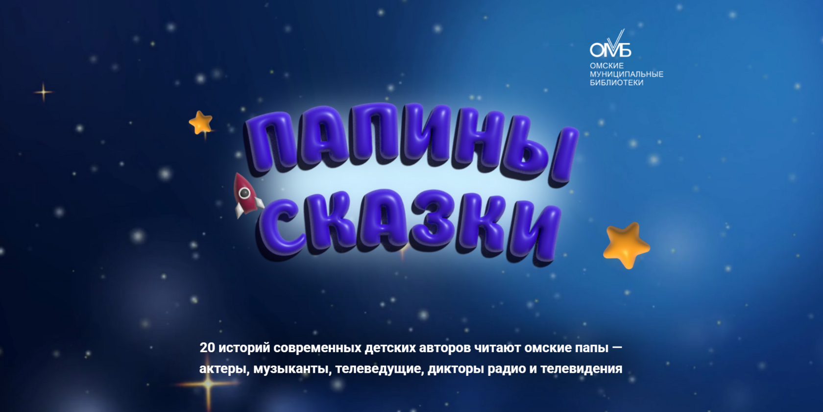Проект «Папины сказки», ориентированный на продвижение совместного чтения родителей с детьми в Омске, продолжил своё развитие путём запуска онлайн-ресурса на сайте омских муниципальных библиотек. Теперь каждый желающий имеет доступ к аудиосказкам, записанным омскими папами по ссылке: https://ip.libomsk.ru/papatales