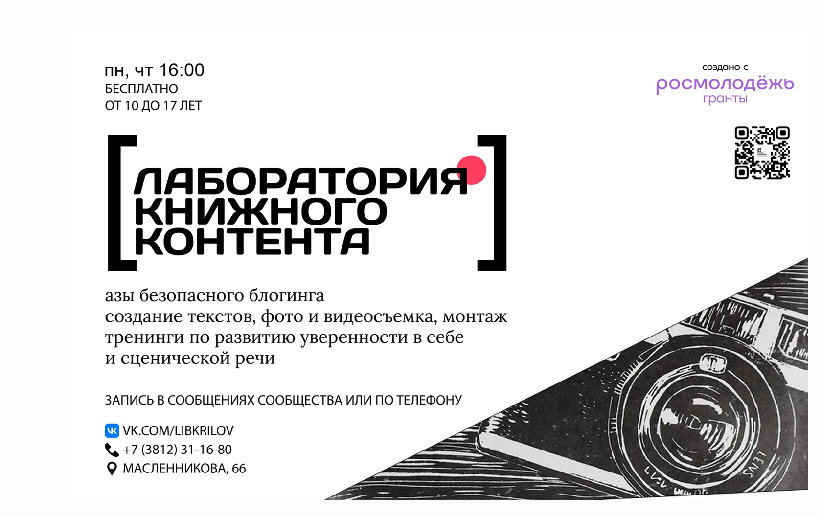 Записаться и получить более подробную информацию можно в сообществе библиотеки в социальной сети ВКонтакте и по телефону: +7(3812)31-16-80.