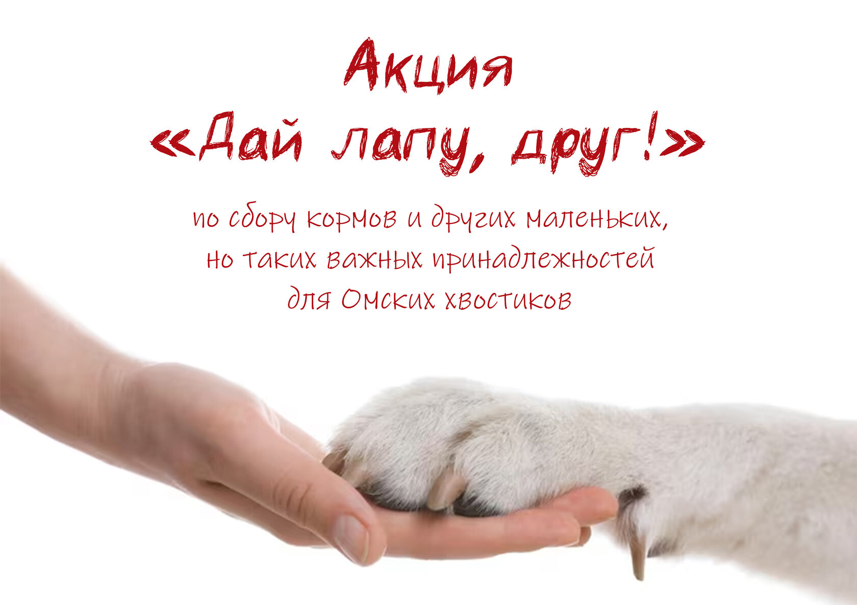 Ждём вас на акции «Дай лапу, друг» — пусть наши маленькие друзья почувствуют поддержку и тепло.